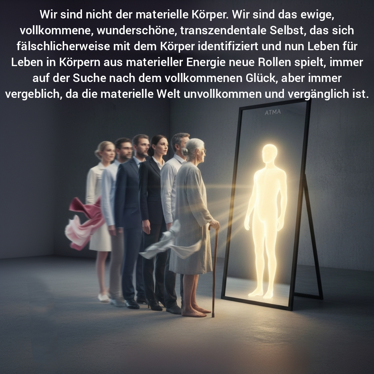 • Wissen als Waffe: Sobald du im Sattva-Guṇa bist, erlangst du die wahre Unterscheidungskraft (Jñāna-Yoga). Die höchste Erkenntnis des Jñāna-Yoga lautet: "Ich bin nicht mein sterblicher Körper. Ich bin die ewige, unzerstörbare Seele (Ātman)." Diese Erkenntnis befreit dich von Angst, Kummer und der ständigen Sorge um das Vergängliche.